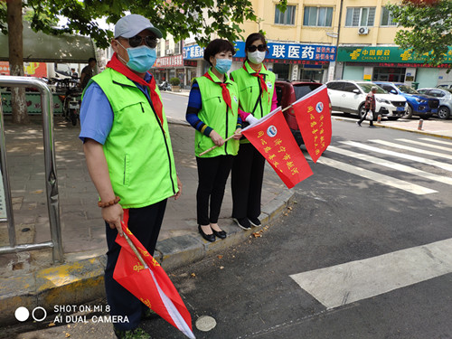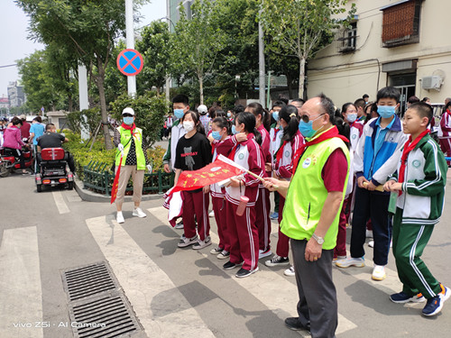 儿童是祖国的花朵、未来和希望。6月1日是国际儿童节。今天上午,济宁市任城区越河同心慈善义工协会的5位队员,身穿着醒目而靓丽的“绿马夹”,戴着口罩,手中拿着指挥交通鲜红的“小团旗”,领口处飘动着鲜红的“红领巾”显得格外醒目而靓丽,他(她)们精神抖擞,站在十字道路的两侧,面对着车轮滚滚的车辆、酷热直射的太阳无怨无悔,始终为放学后的学生护航,孩子们看到义工队员那么辛苦,便主动上前行队礼问好:“伯伯、阿姨您们辛苦了”,许多家长也上前纷纷帮忙,积极配合交通疏通。越河同心慈善义工协会李传亮副会长表示:“今天是六一儿童节,队员们带上红领巾,积极为学生营造一种和谐、热烈、喜庆的节日气氛,也是通过这个节日给放学的学生创造一个安全的环境,让孩子们开开心心来上学,安安全全回家去”。