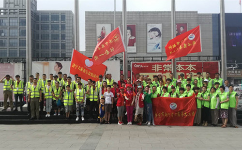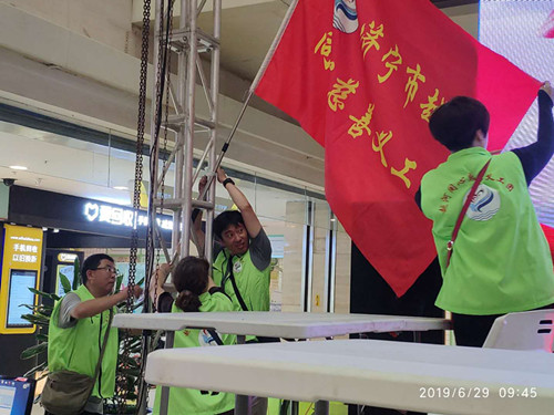 6月29日,鲜红的“济宁市越河同心慈善义工团”团旗在“文化广场”上空飘扬,翠绿色的义工马夹非常靓眼,这里正在汇集不同慈善爱心团队组织开展“帮扶危重病人义卖”公益活动,此项活动得到了“济宁市书画界爱心人士、济宁市慈善总会及有关新闻部门”的大力支持。