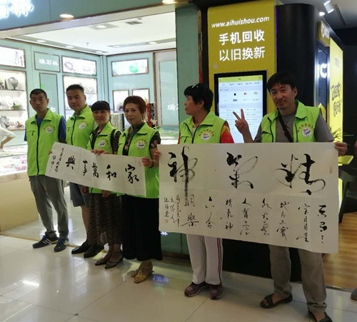 活动中,越河同心慈善义工团30余名队员与济宁市慈善社会一团等三支社会爱心团队来到运河城,通过有效的组织进行服务,他们不仅有条不紊的布置场地,帮助书画家们当助手,以及积极购买爱心物品与书画,整个爱心“义卖”活动呈现出一片温馨、动情、祥和的浓厚氛围,让“爱”的美好心灵与行为得到了充分“释放”;在拍卖活动中,越河同心慈善义工团的潘雷同志,以600元的价格购买得一幅”年年有鱼”书画作品,不仅得到了艺术真品,而且还为”危重病人”献出了爱心。同时,参与活动的三支爱心社会团队也充分展现出团结友爱的集体主义思想,为此次“帮扶危重病人义卖”公益活动的顺利举行划上了圆满句号。