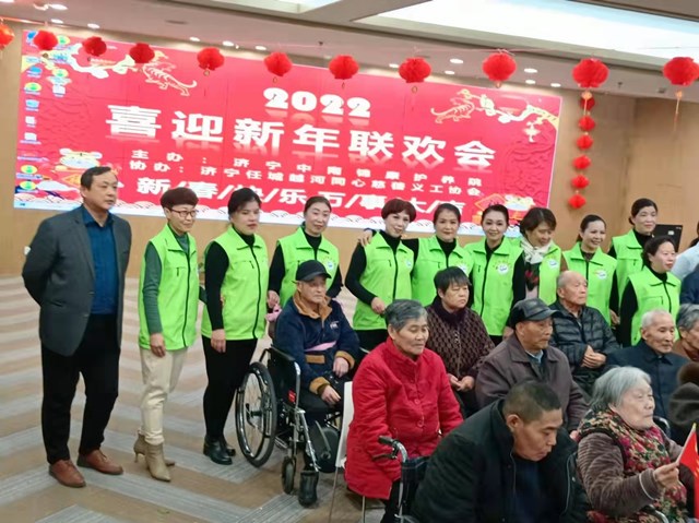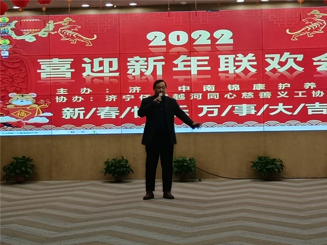 1月16日下午,由济宁中南锦康护理院和济宁任城区越河同心慈善义工协会联合举办的“喜迎2022新年联欢会”隆重举行。