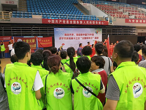7月18,由济宁市残疾人联合会主办,任城区残疾人联合会承办,济宁蜗牛之家义工团、越河同心慈善义工协会、济宁鸣堂音乐义工团等八家单位协办、支持的“融合共享,喜迎新中国华诞”济宁市庆祝第十三次“全国特奥日”活动在济宁市太白湖鸟巢隆重举行。